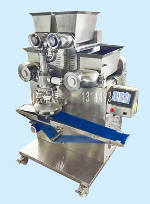 | 技术特点: 1、最新三馅进出料设计,完美实现馅中馅产品的制作,让您能做出更多品种,口味和规格的食品,从而为您开拓更宽更大的终端市场。 2、加厚的特氟龙图层料斗,进出料通道处理,能有效的解决皮料和馅料与料斗和通道的粘连,明显提高生产效率和换料速度。而且更易于清洁和保养。 3、行业独家采用多把圆弧型切刀技术,能保证切出的产品皮料厚薄一致,上下均匀无尖头。 |